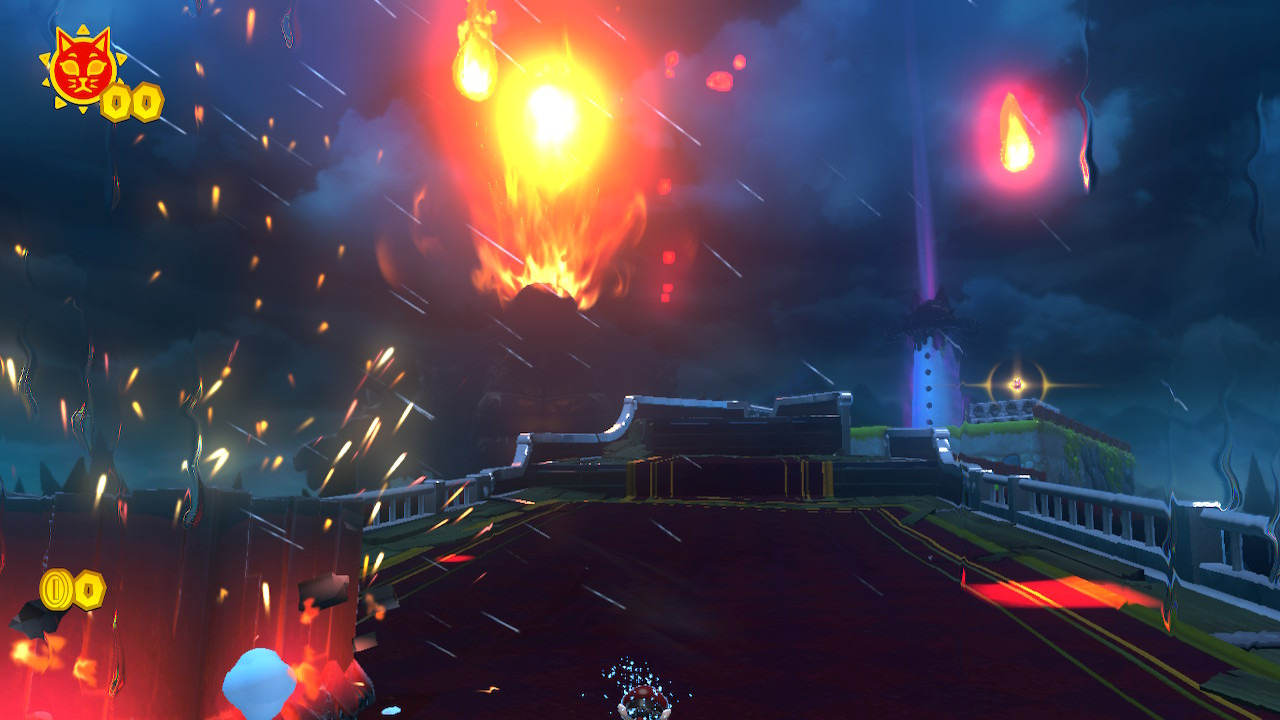 슈퍼 마리오 선샤인을 오마주한 작품으로, 마리오는 검게 물든 거대한 쿠파, '퓨리쿠파'를 저지하는 것을 목표로 넓은 고양이 호수 위에 떠있는 섬들을 무대로 '고양이 샤인'을.